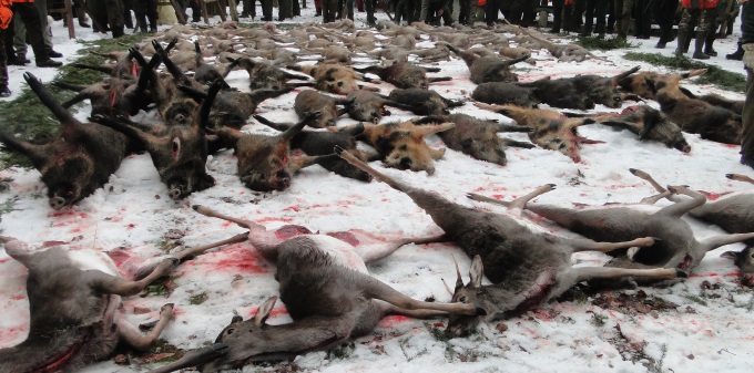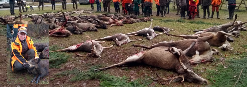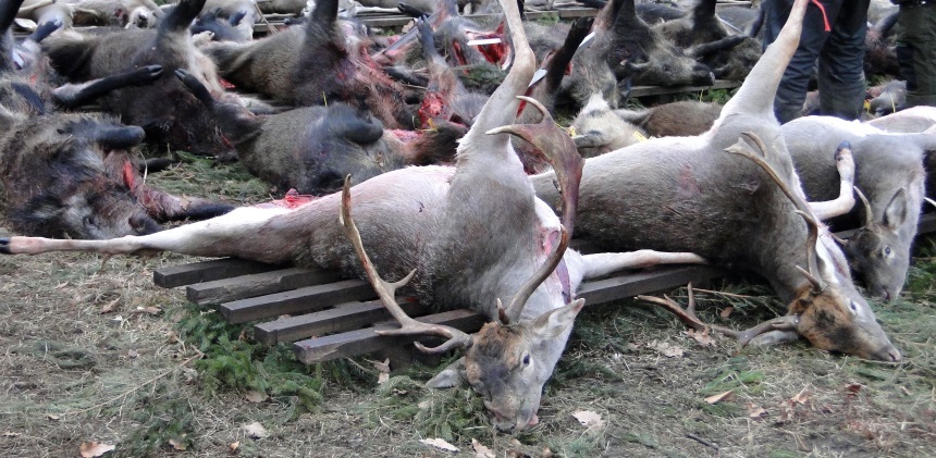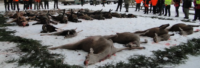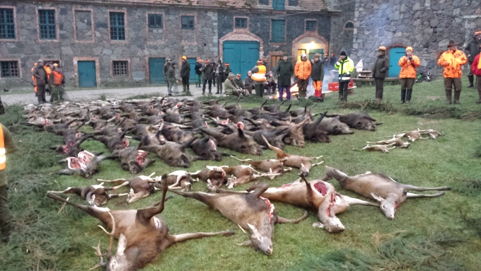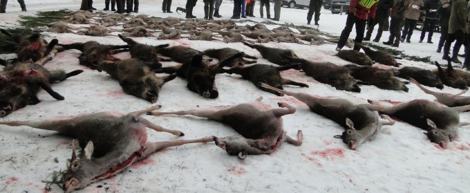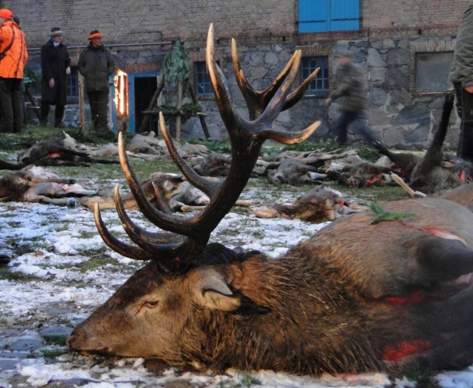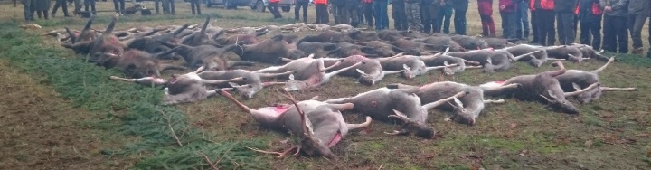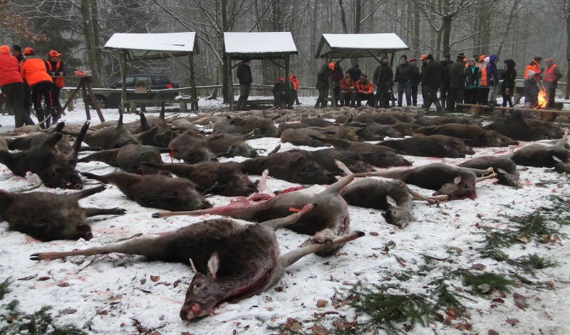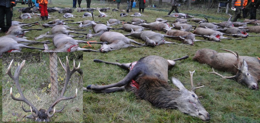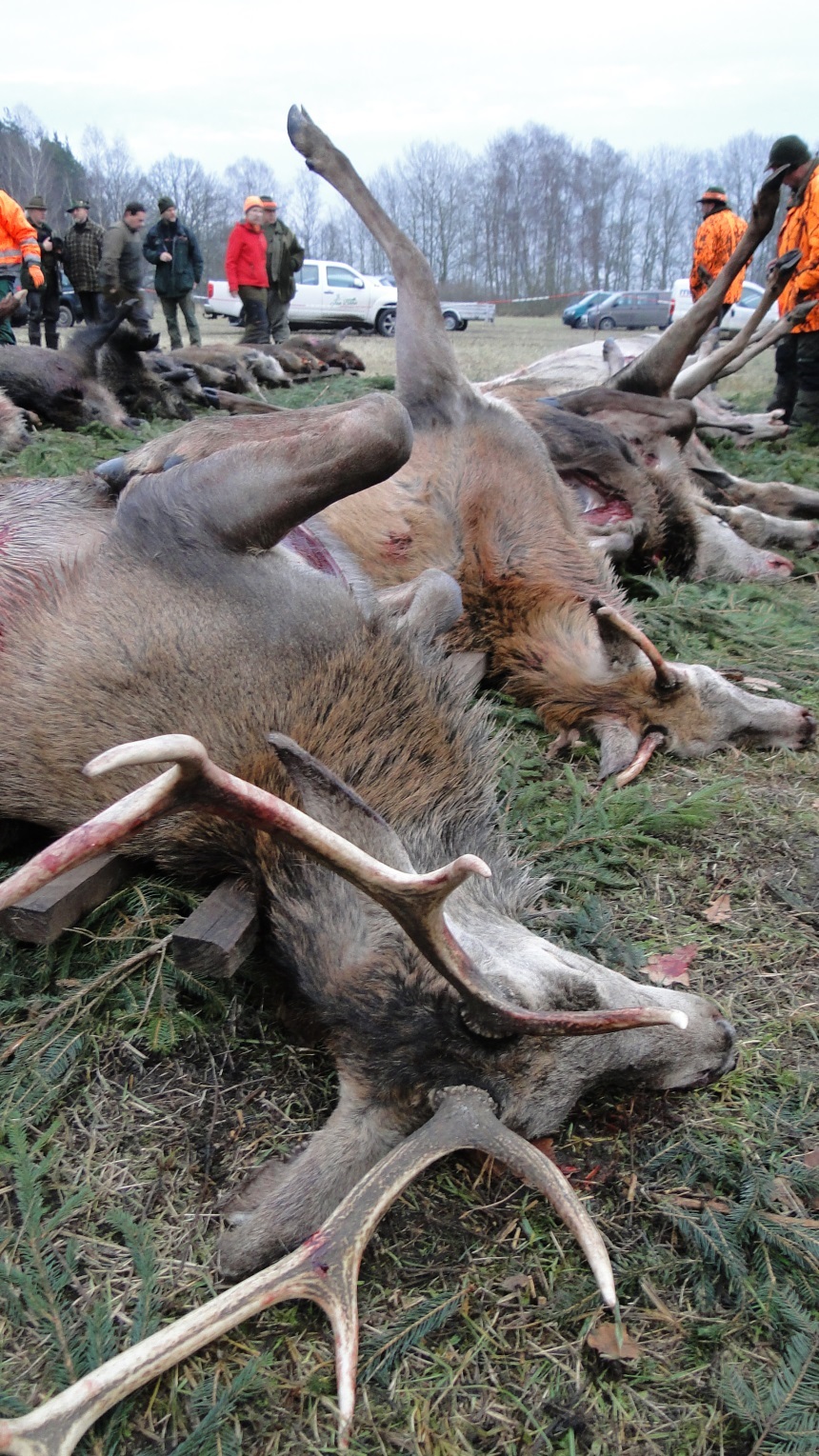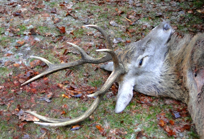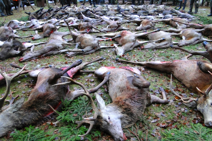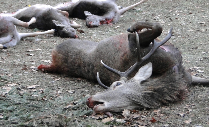 Es liegen diesmal sogar acht Rothirsche mit auf der Strecke.