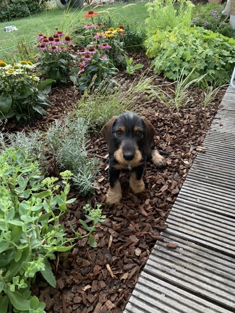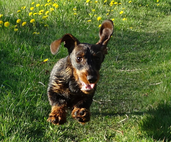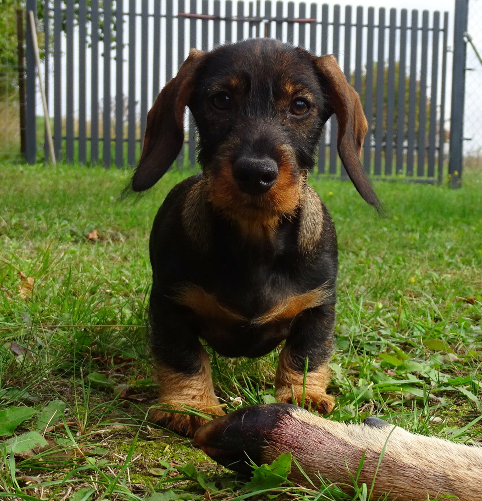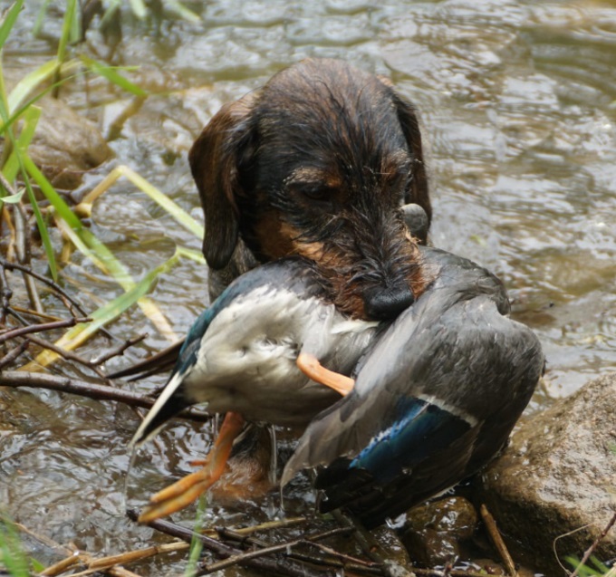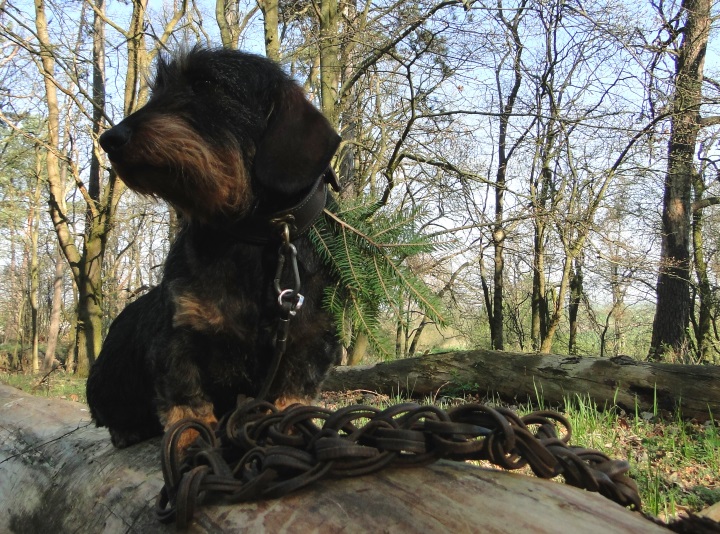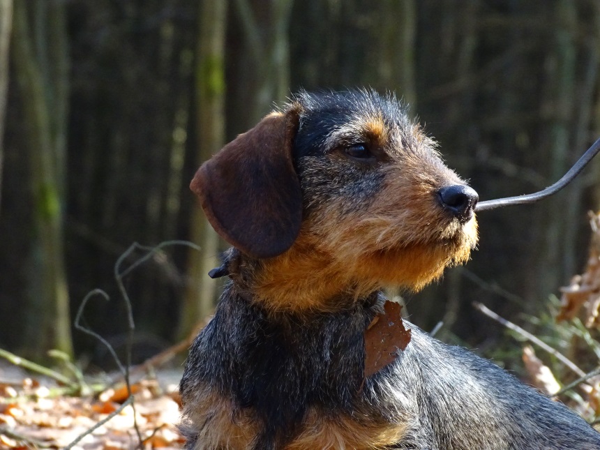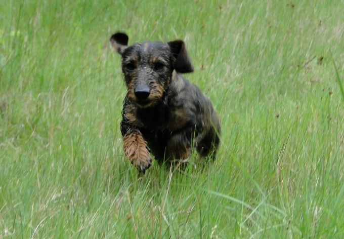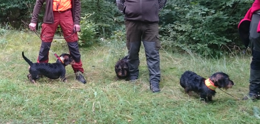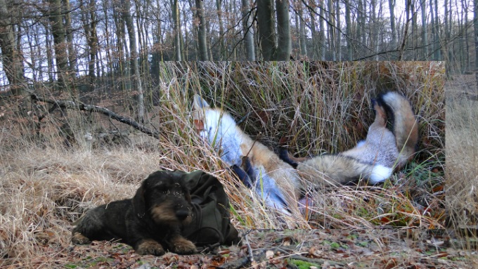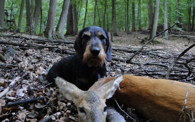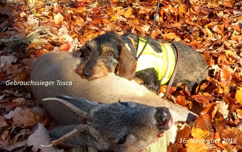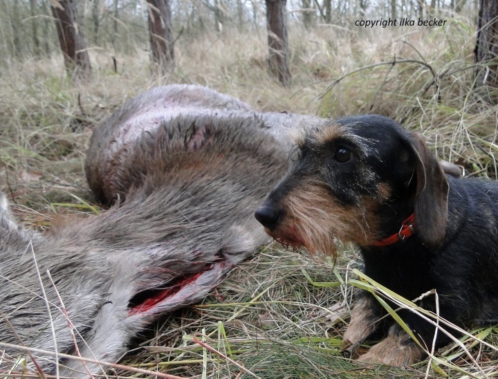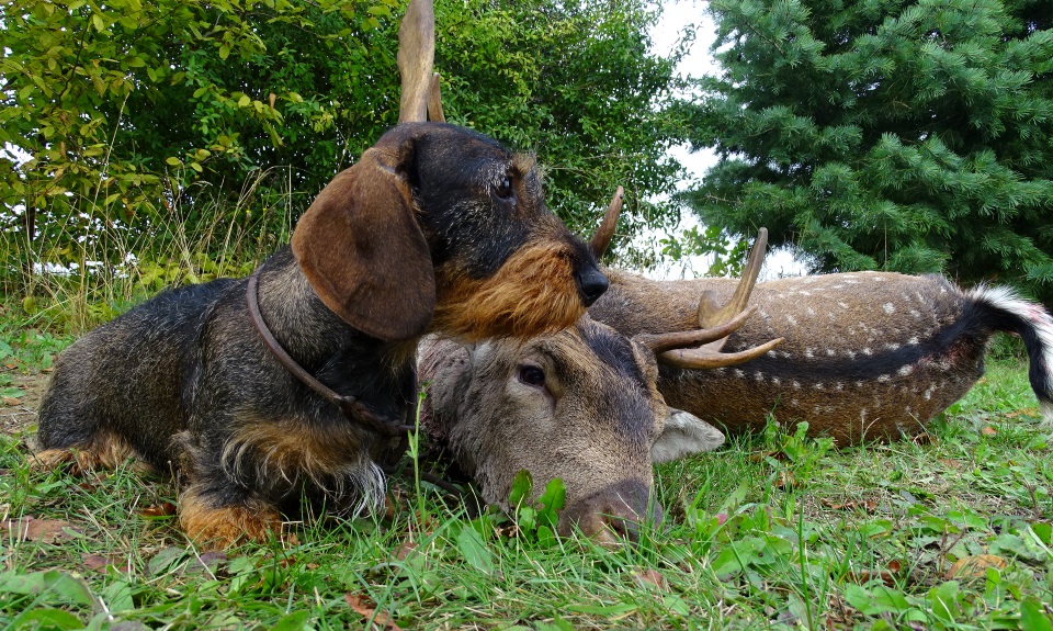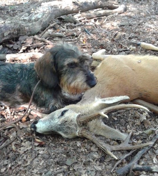 mit herrlichem Laut arbeitete der Rauhaarteckel die frische Rehfährte bis es