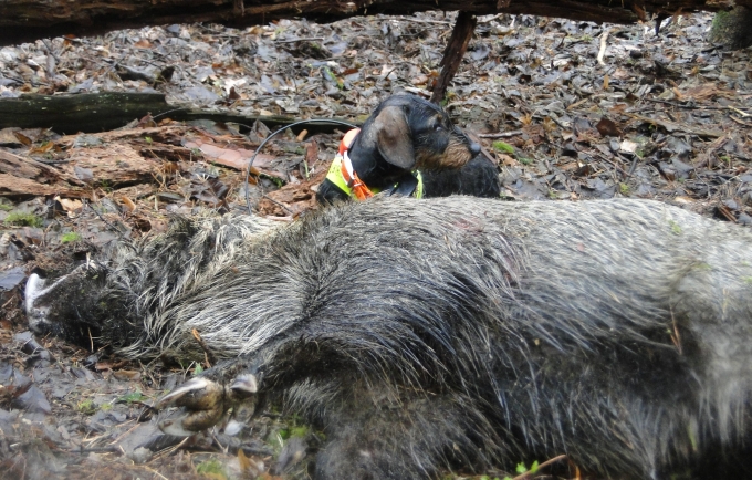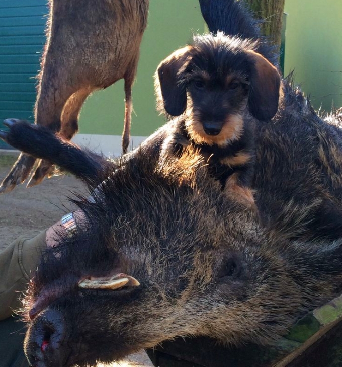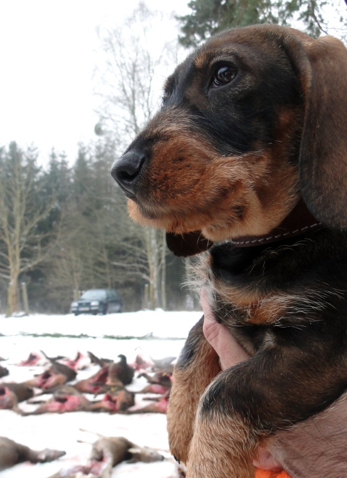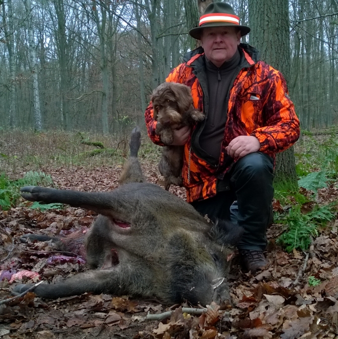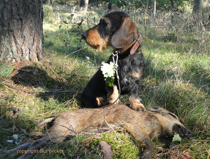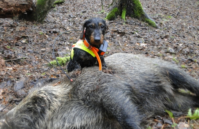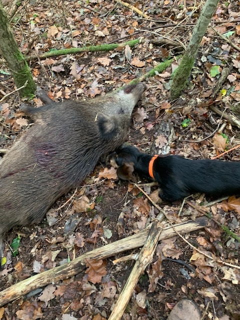 Uno sammelt erste Erfahrungen am Schwarzwild. Weidmannsheil nach Berlin.