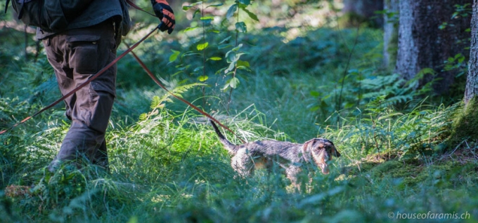 Quickley wird auf der Schweißfährte eingearbeitet, hier wartet er am