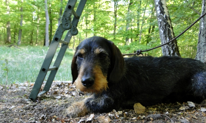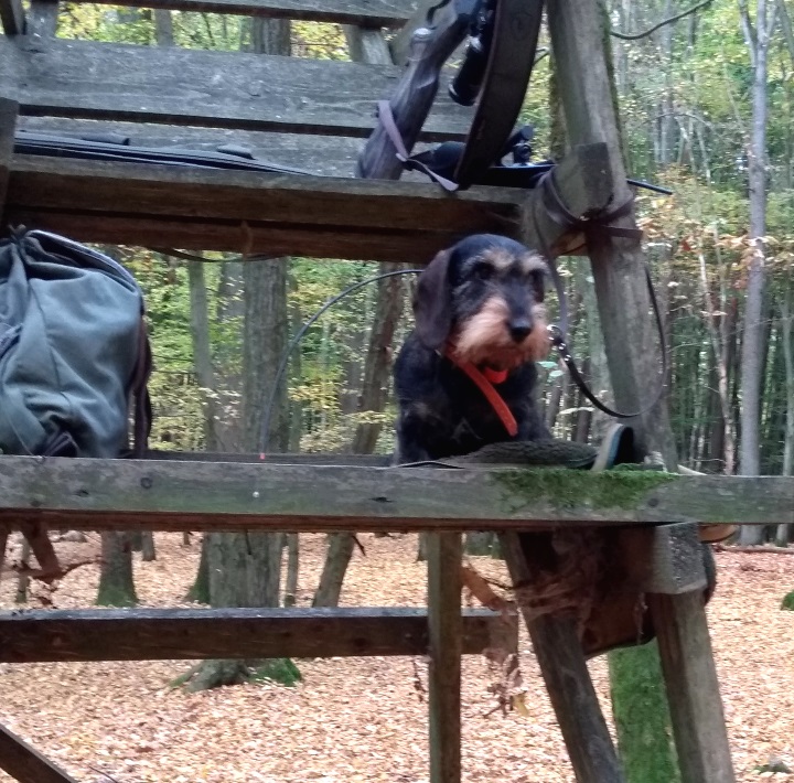 Mai 2016, Quickley mit zum Ansitz (wir haben zur Zeit Welpen von Quickley)