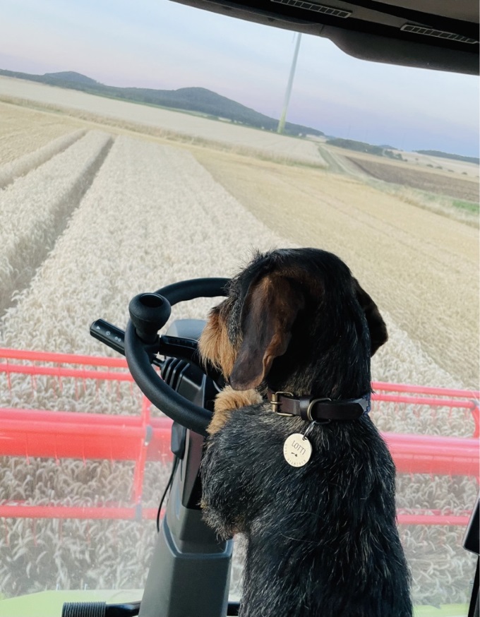 Zirpe-Lotti als Erntehelfer, sie schaut schon mal nach ob sich Sauen
