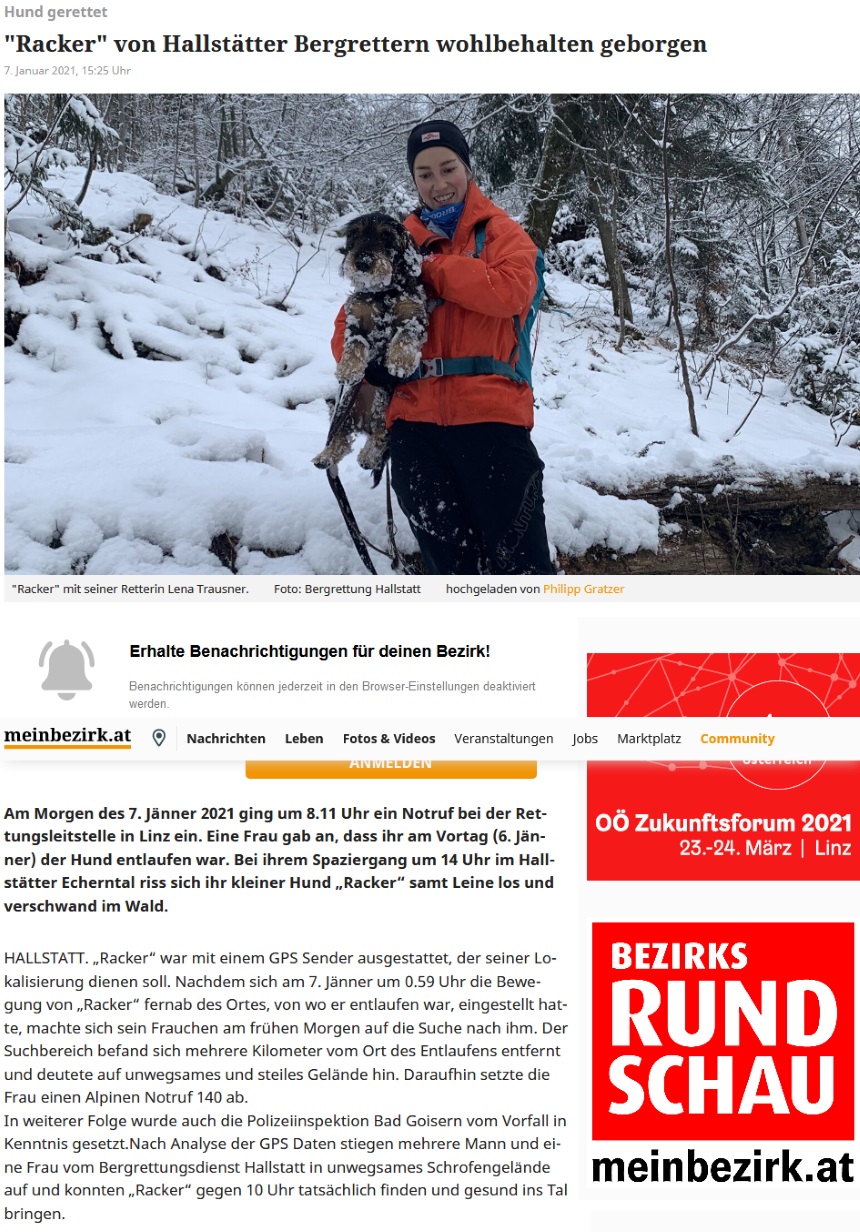 verstiegen. Dabei hatte er laut GPS Sender 19 km zurück gelegt. Er ist ein Sohn