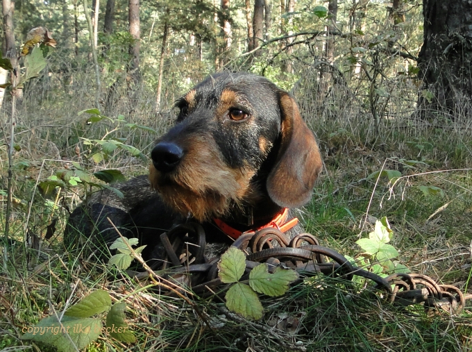 mit herrlichem Laut arbeitete der Rauhaarteckel die frische Rehfährte bis es