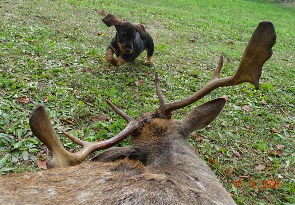 Oktober 2020, Wasti nimmt sein erstes Stück Rotwild in Besitz.