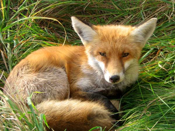 Rotfuchs in der Sonne liegend