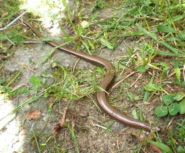 eine Blindschleiche im Juli am Wegesrand