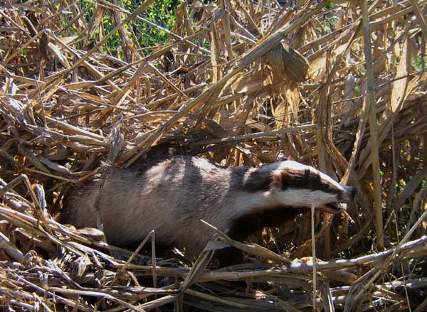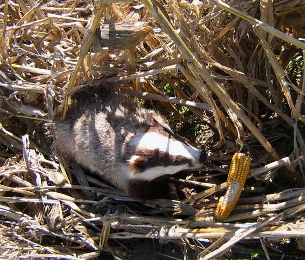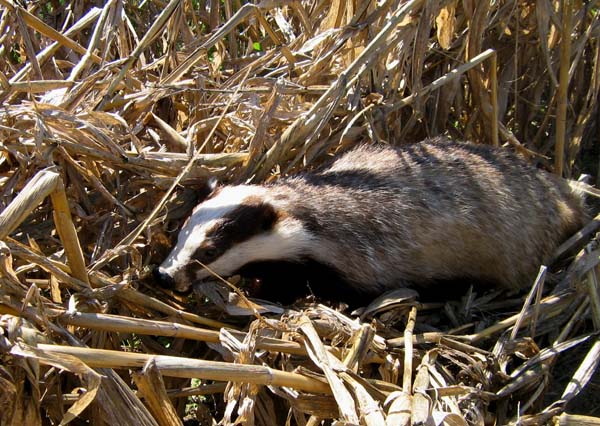 Ein junger Dachsrüde im Maisschlag.