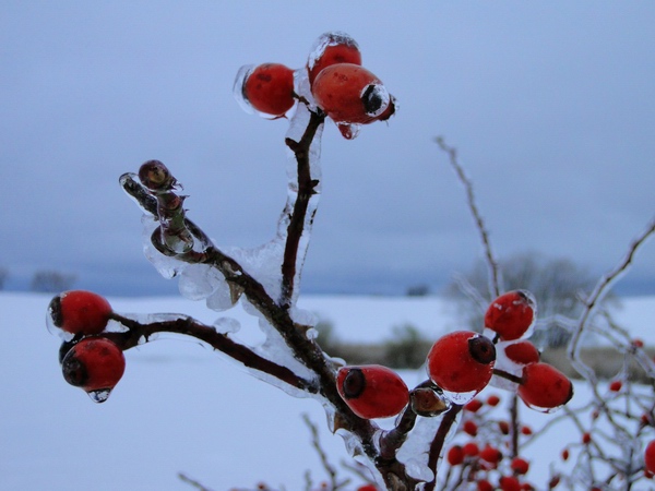 Hagebutten im Eismantel