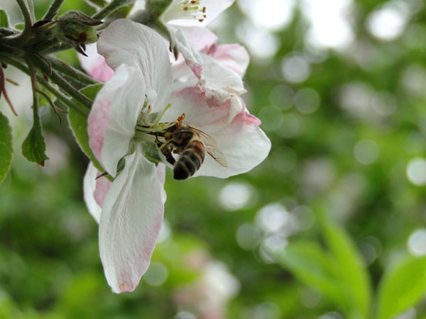 Mai 2010, die fleißigen Bienen sorgen für eine reiche Apfelernte in der