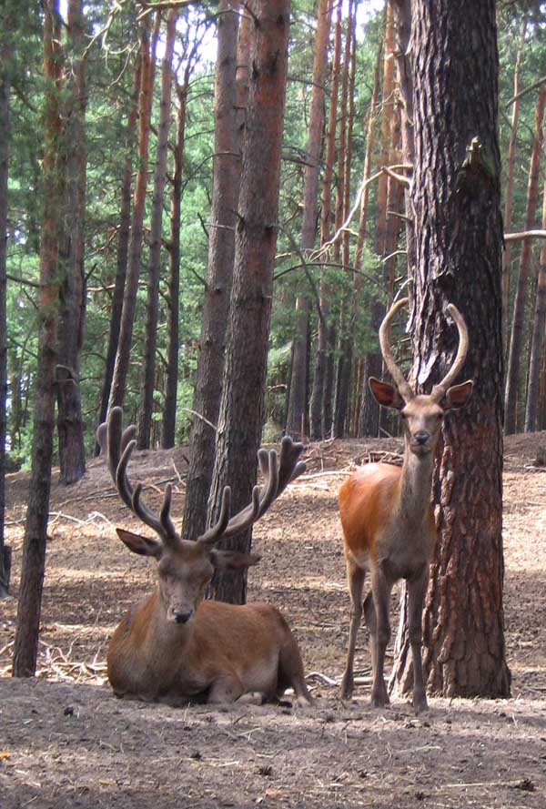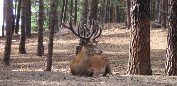 Noch sind die Geweihe der Rothirsche im Bast.