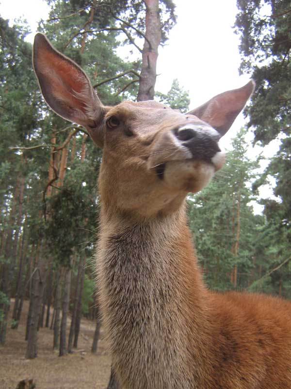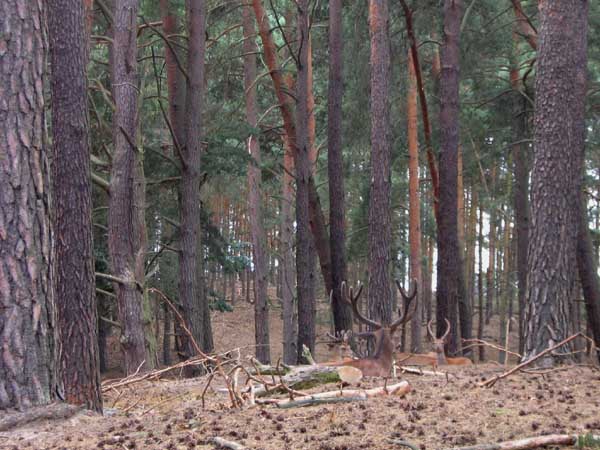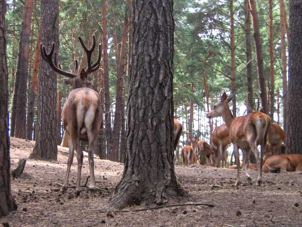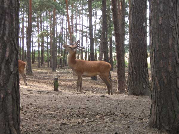 Juli 2008 in der Schorfheide, ein kleines Hirschrudel, ob der Spießer mich