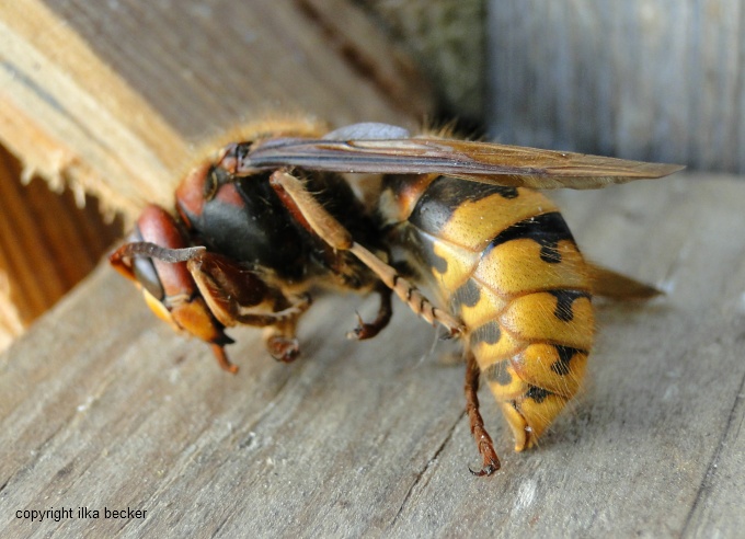 Die Hornisse (Vespa crabro) ernährt ihre Brut von Insekten und sind daher