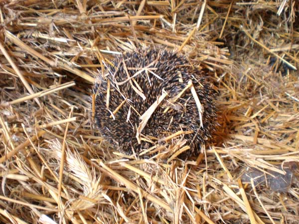 Im Strohlager von Lilli fand ich diesen kleinen Igel, der trotz der eisigen