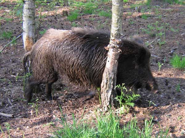 Einem noch jungem Keiler juckt die Winterschwarte.