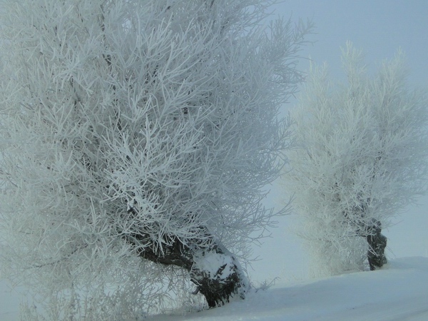 Weiden am Wegrand bei Minus 15 ° C