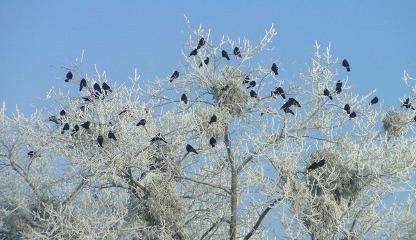 Alte Pappeln dienen als Rastplatz.