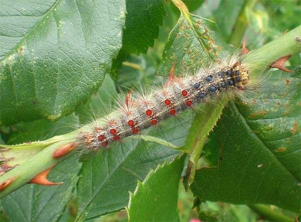 Eine erwachsende Raupe vom Schwammspinner (Lymantria dispar). Bei einer