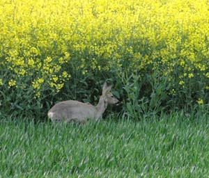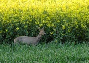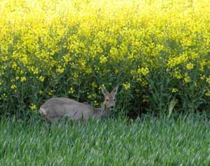 Der Raps bietet dem Rehwild gute Deckung.