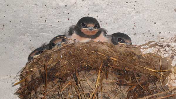 Junge Rauchschwalben kurz vor dem ersten Ausflug