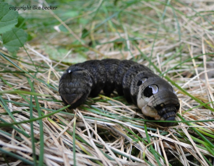 Mittlerer Weinschwärmer (Deilephila elpenor), diese Raupe ist Anfang