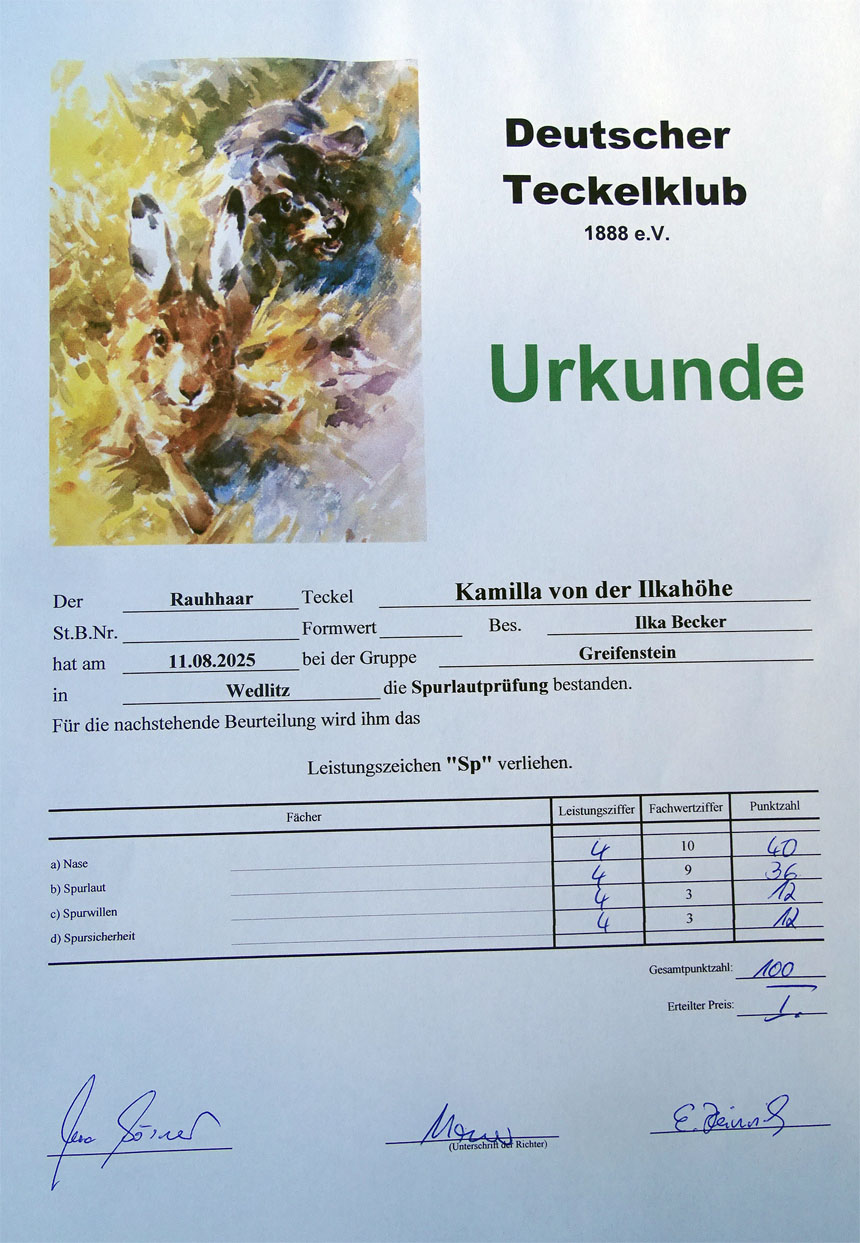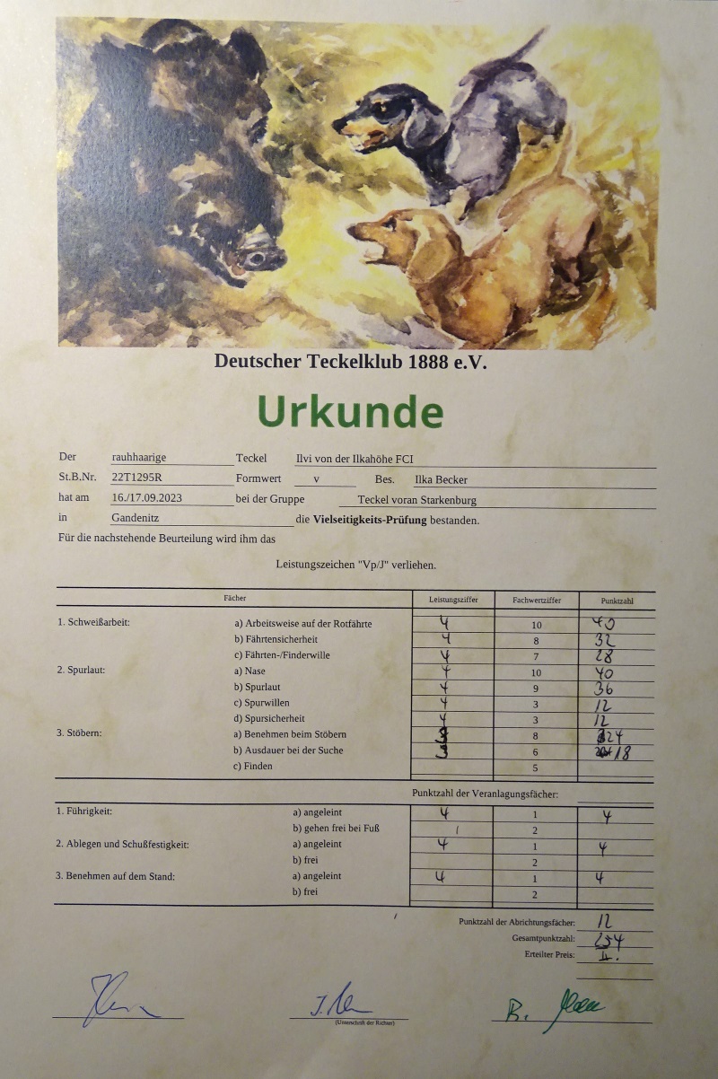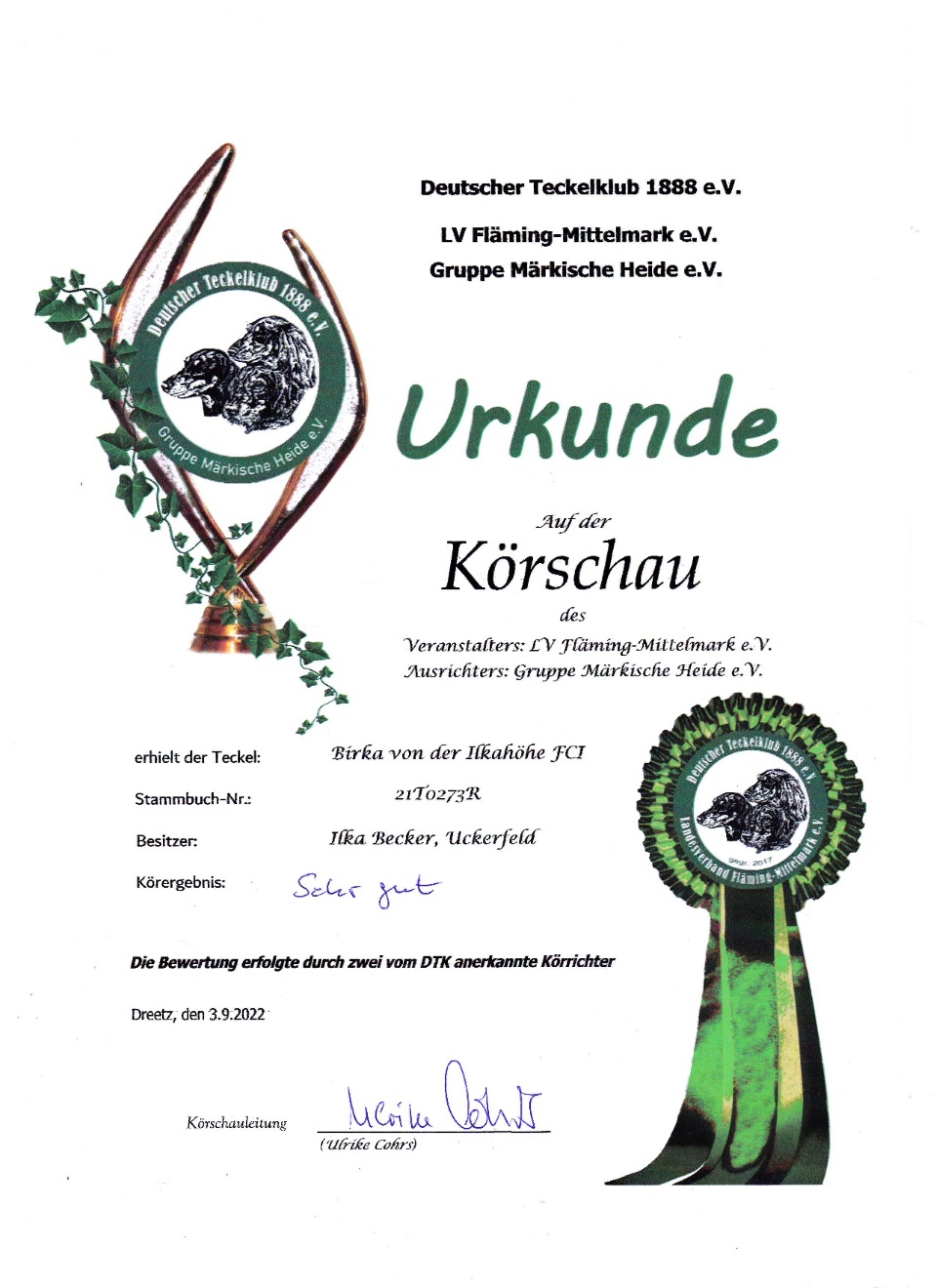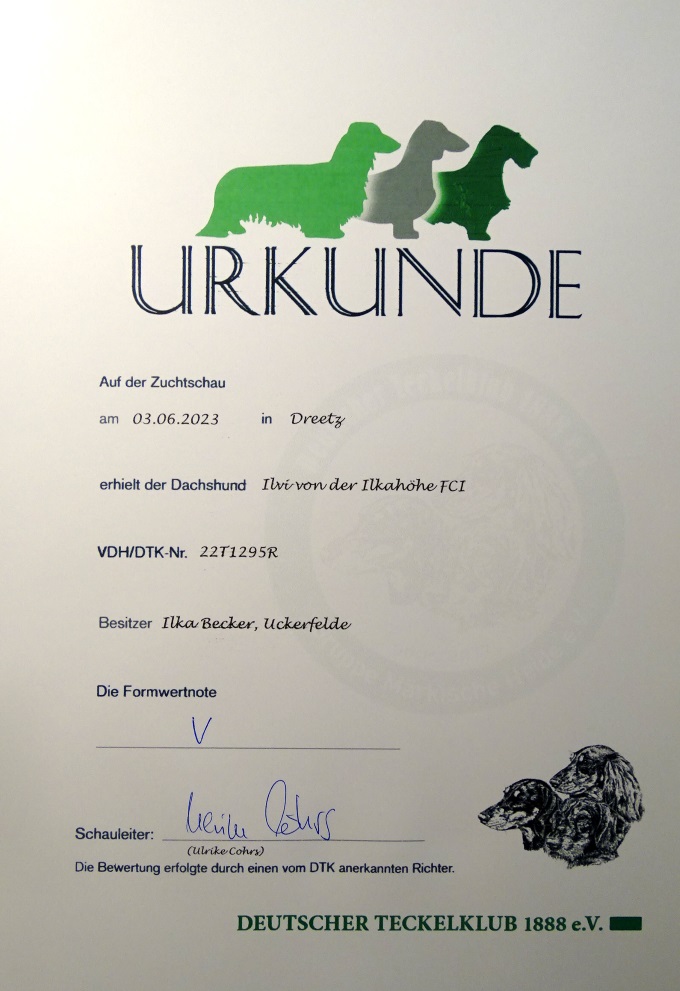 erhielt Ilvi vom DTK Bundeszuchtwart den Zuchtformwert: vorzüglich.