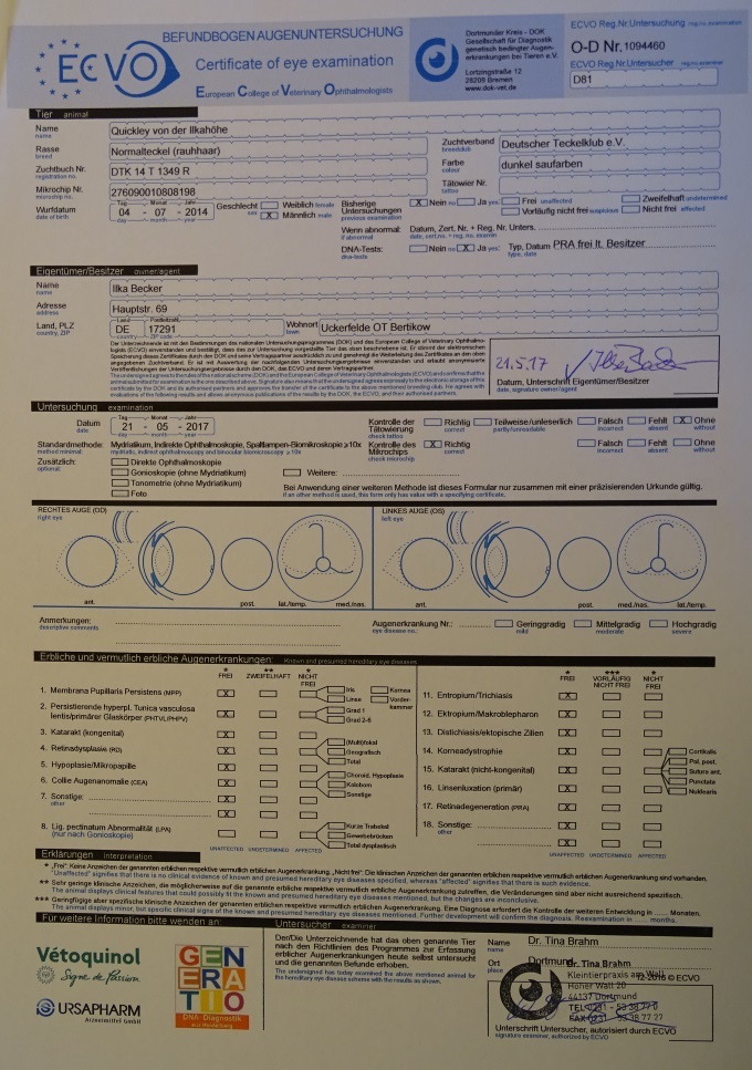 Augenuntersuchung am 21.05.2017- frei PRA und Katarakt