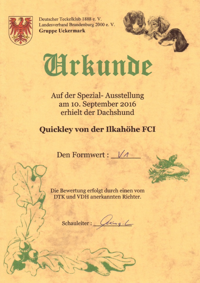 An beiden Ausstellungstagen erhielt Qickley die Anw. Dt. Ch.