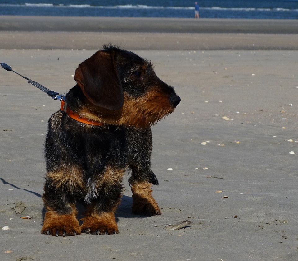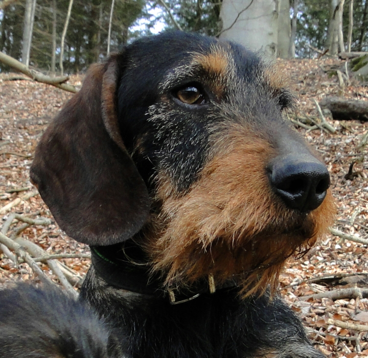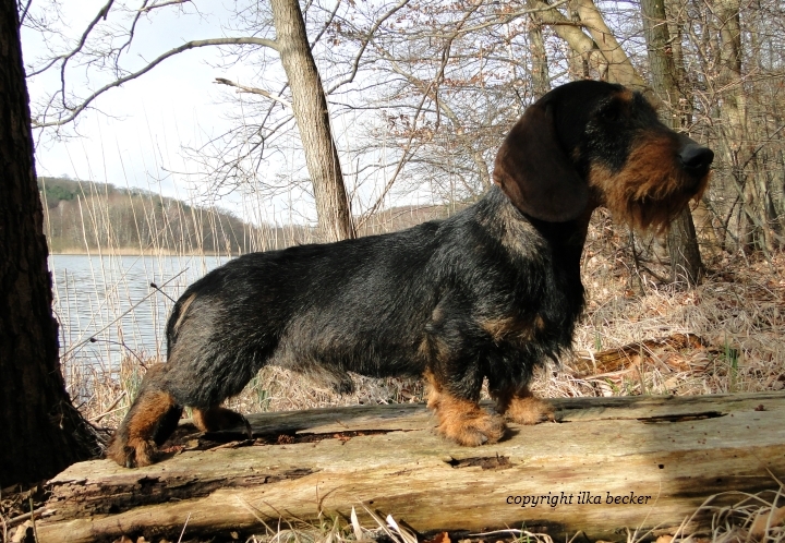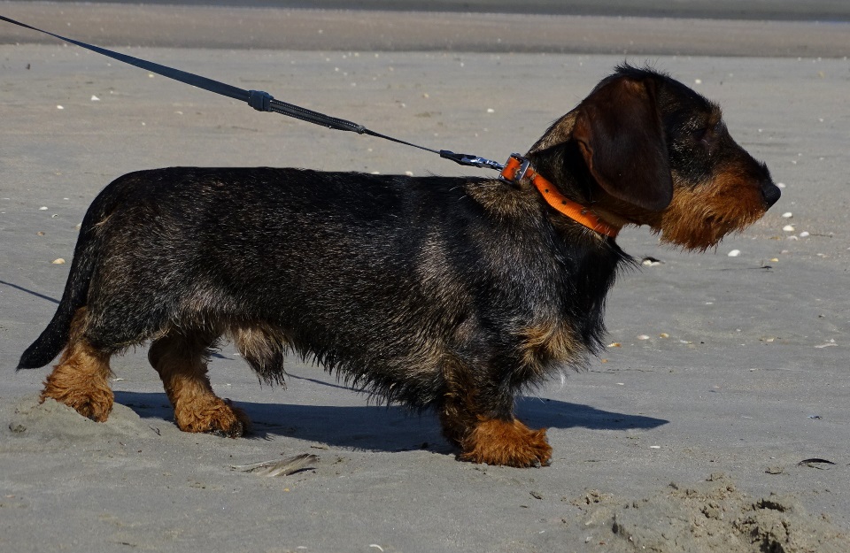 Kräftiger dunkel-saufarbener Rauhhaar-Standart-Rüde mit typvollem, maskulinen