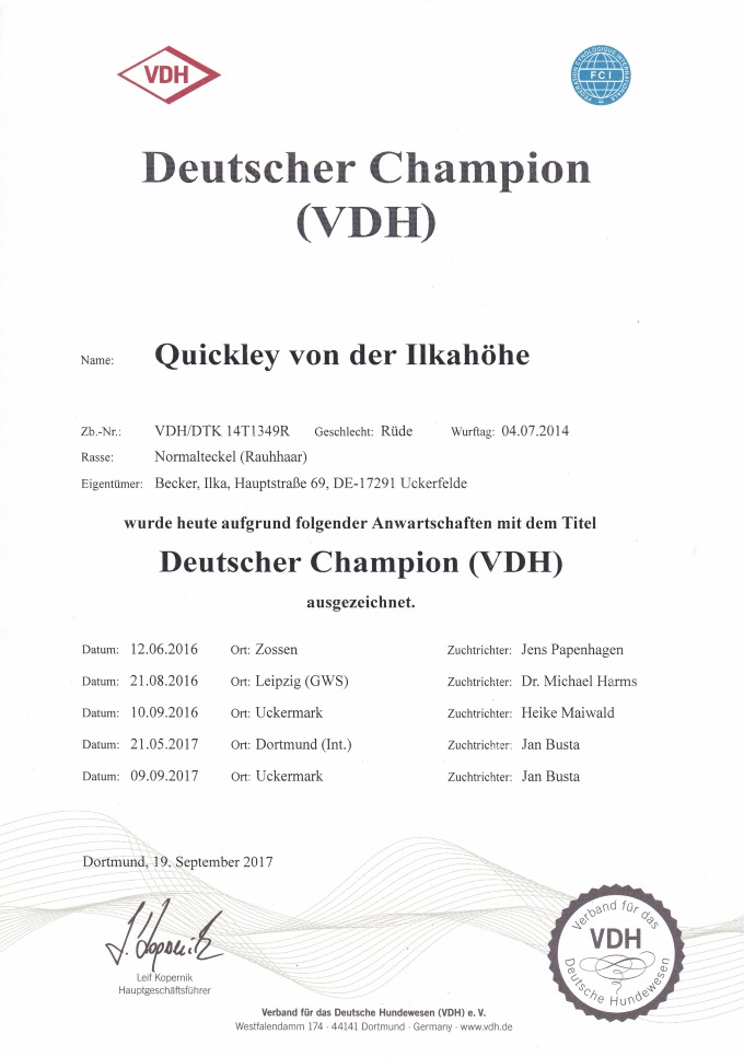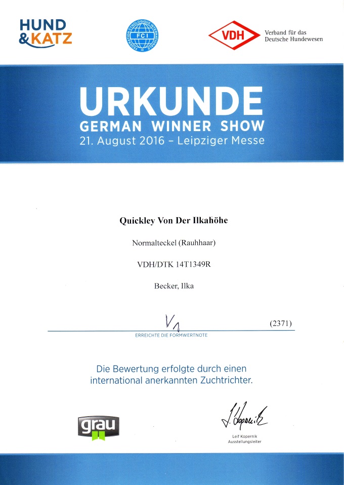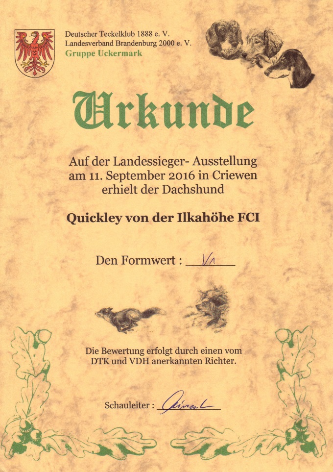 VDH und DTK und wurde Landessieger 2016.