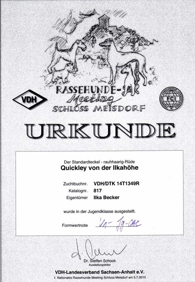 Vorzüglich 1. Platz, Anwartschaft Dt Jug.Ch VDH, CAC J DTK