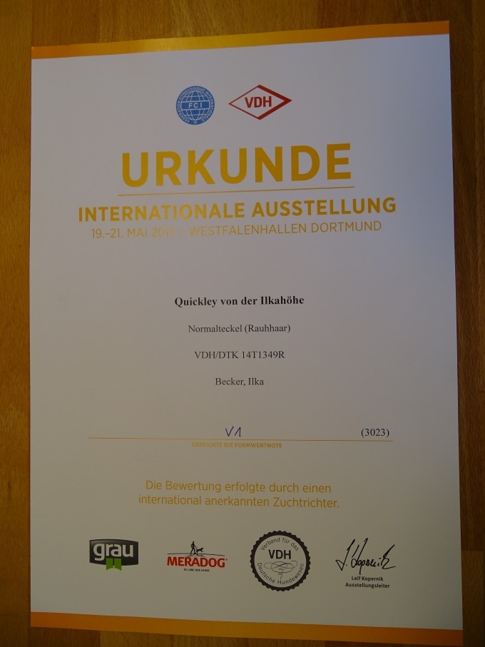 Formwert: Vorzüglich 1. Platz, Anwartschaft Dt Jug.Ch VDH