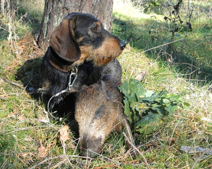 dunkelsaufarbe, kräftiger Rüdenkopf mit etwas kürzerem