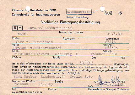 Am 15.7.1989 kauften wir in Fambach/Thüringen vom Züchter