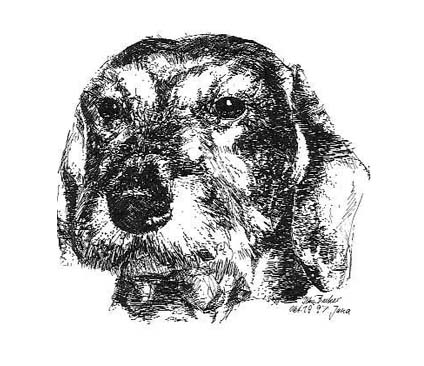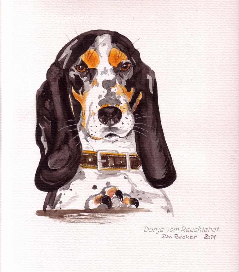 Berner Niederlaufhündin Dunja, Aquarell von Ilka Becker