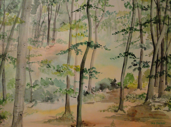 Hirschbrunft in Gustavsruh, September 2010, Aquarell von Ilka Becker