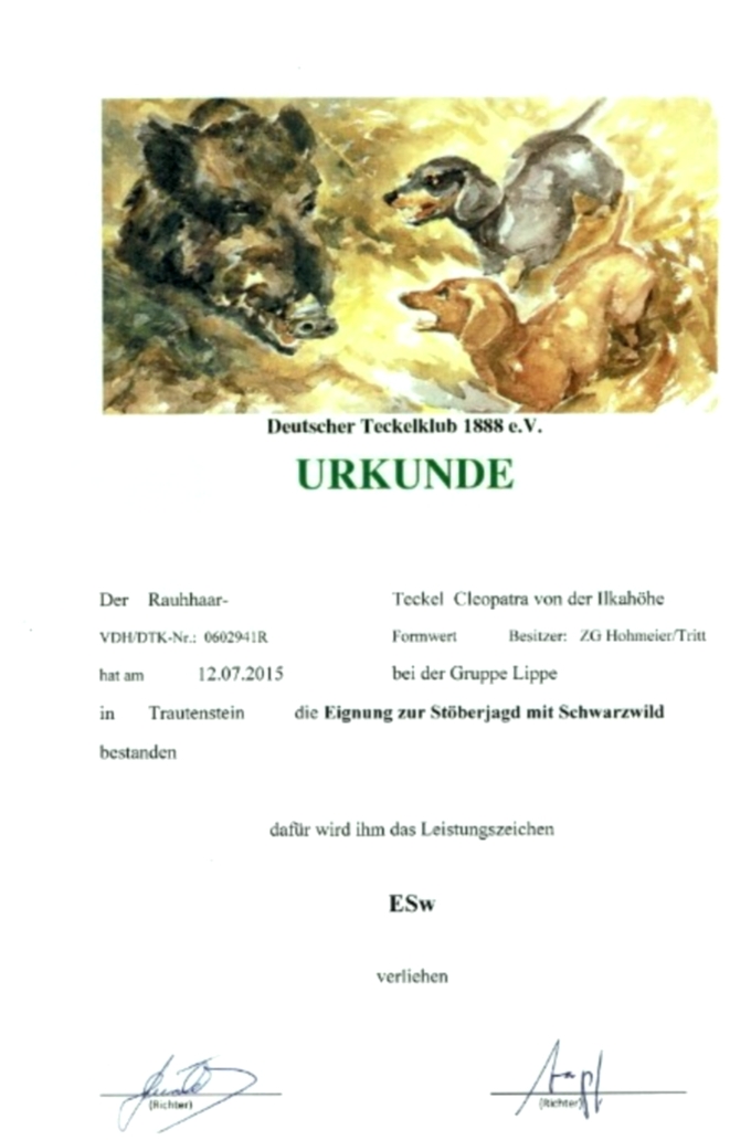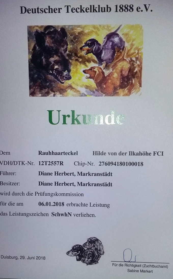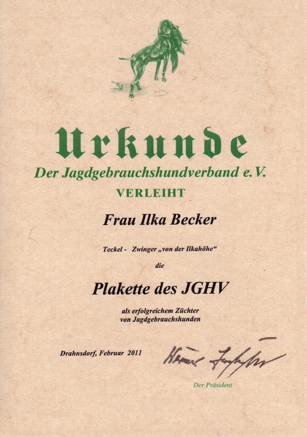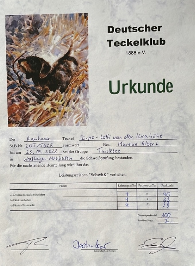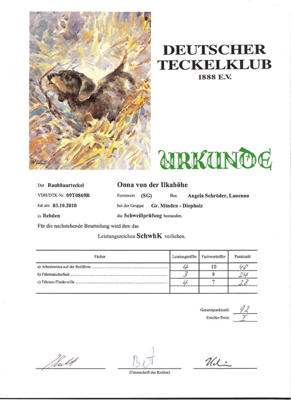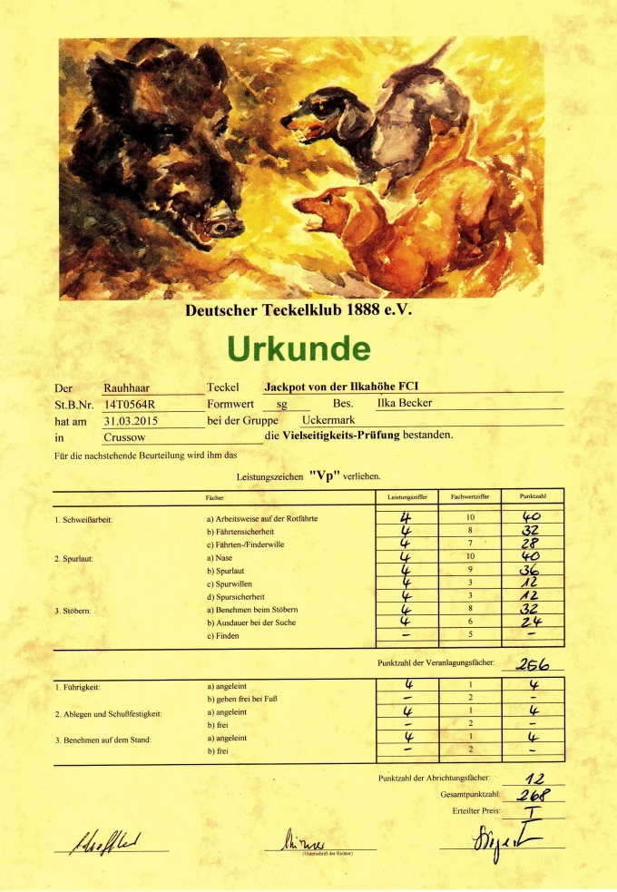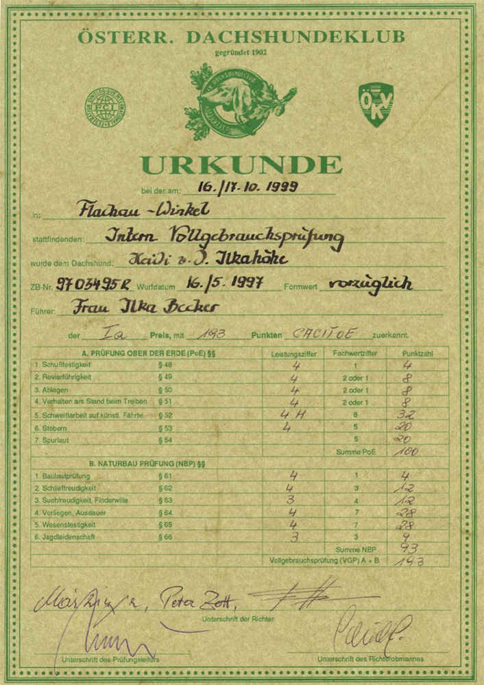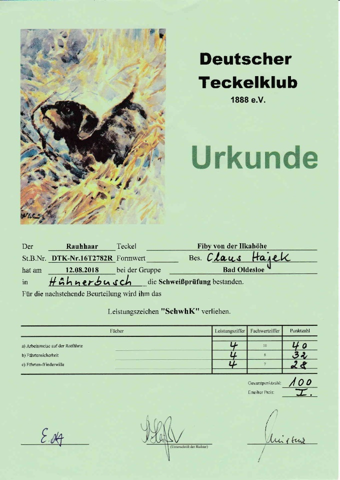 Teckel aus unserem Zwinger zu führen und jagdlich einzusetzen. HERZLICHEN DANK