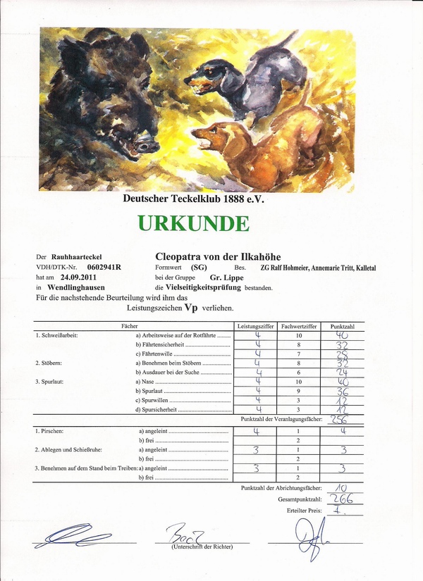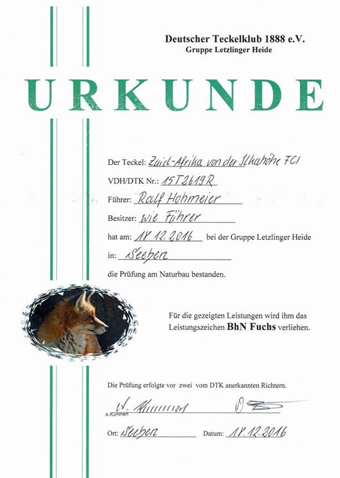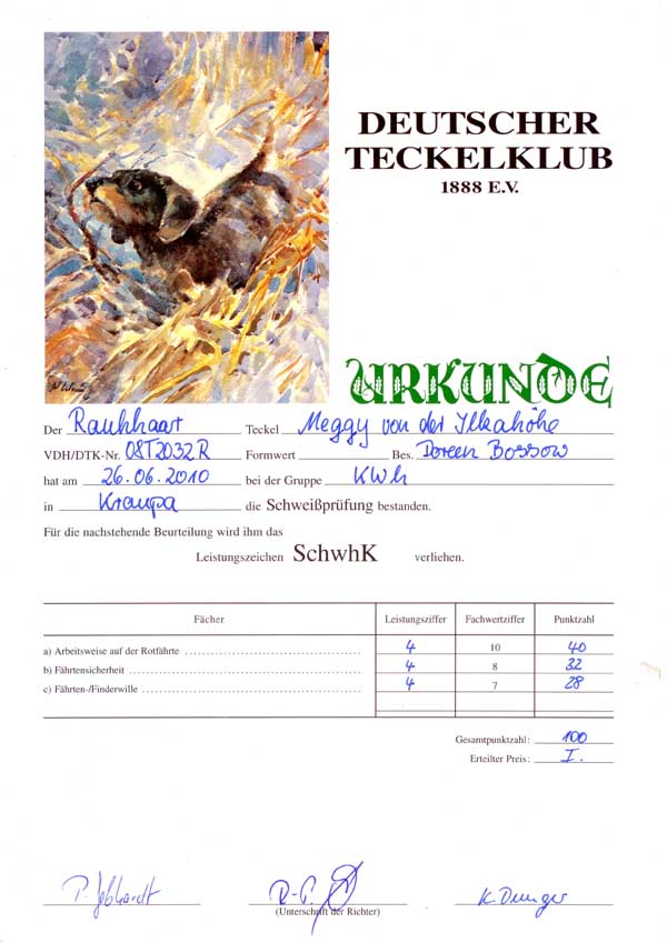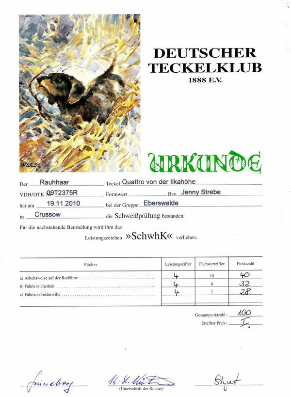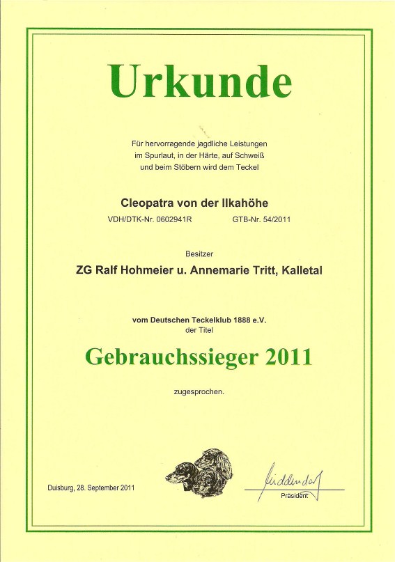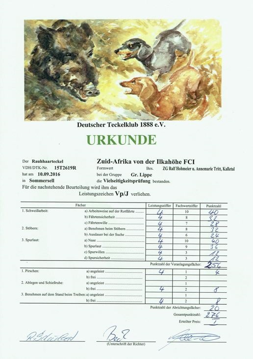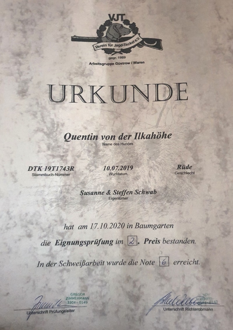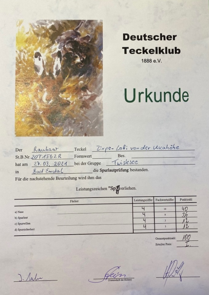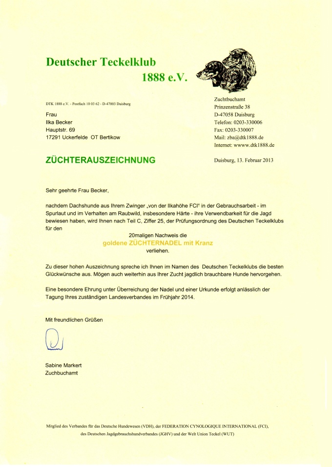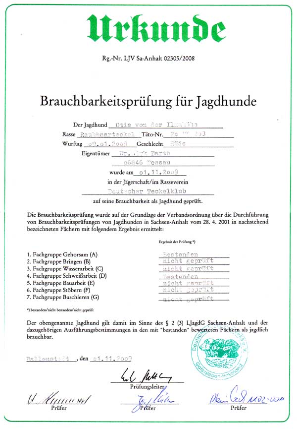 Teckel aus unserem Zwinger zu führen und jagdlich einzusetzen. HERZLICHEN DANK