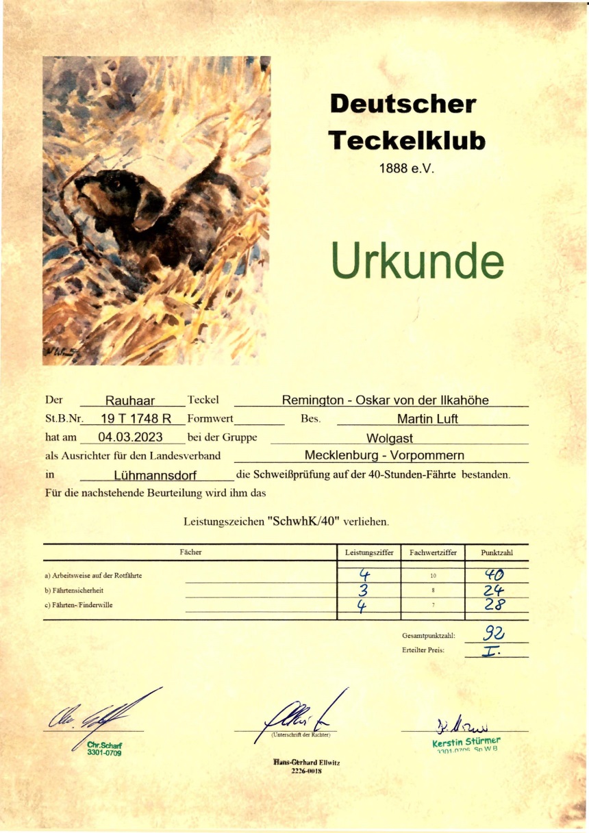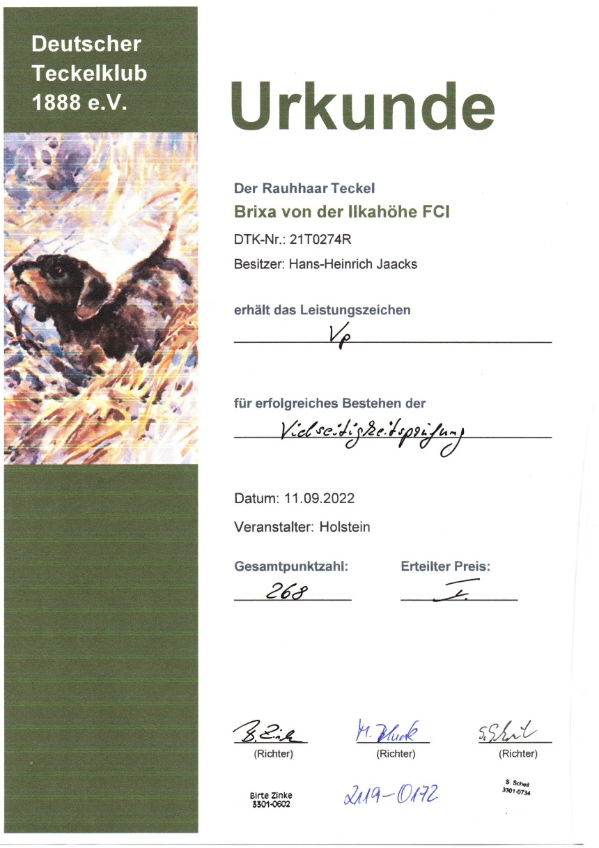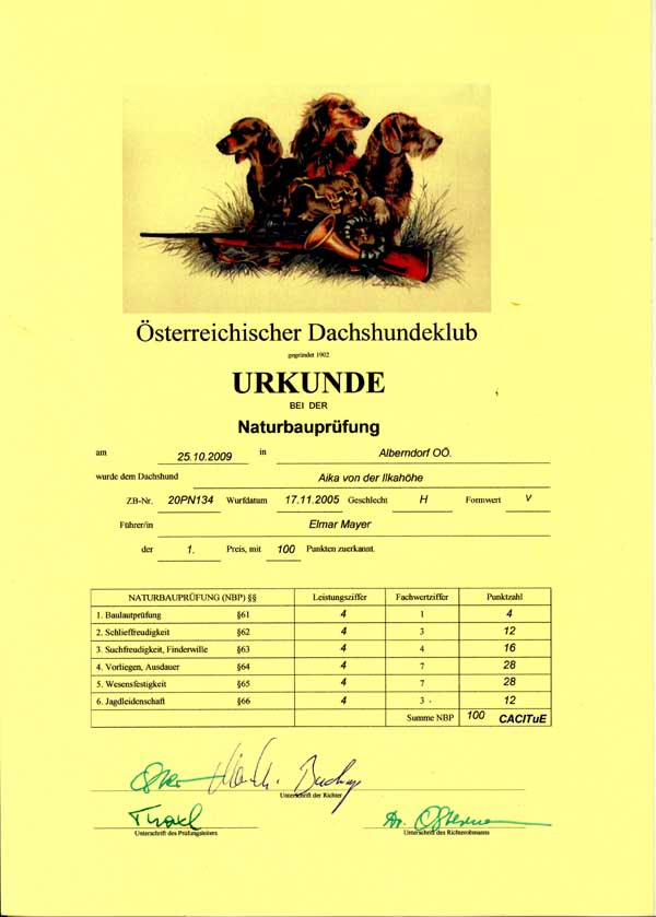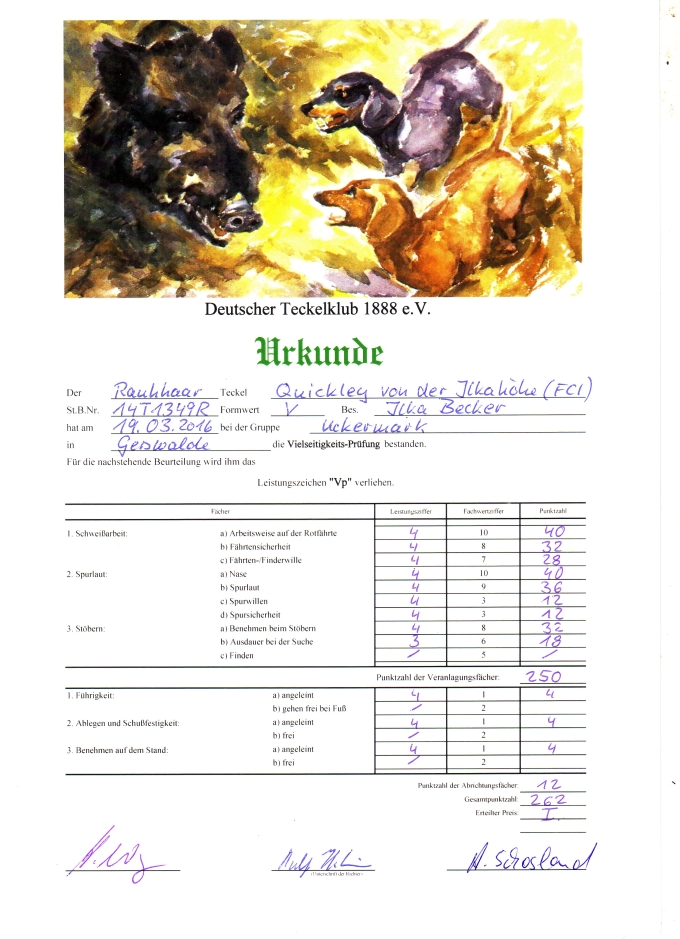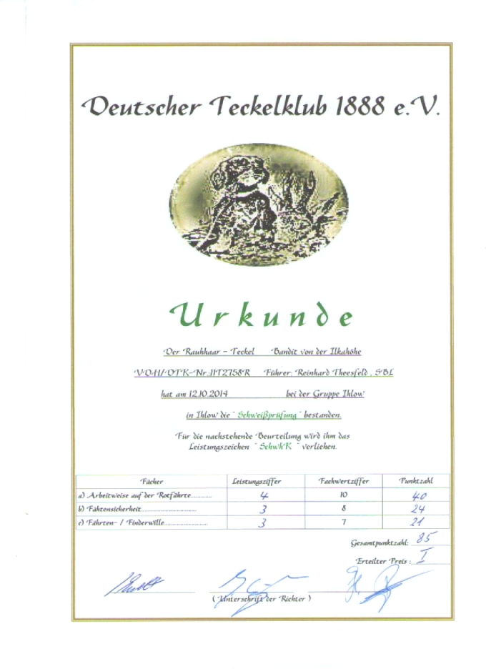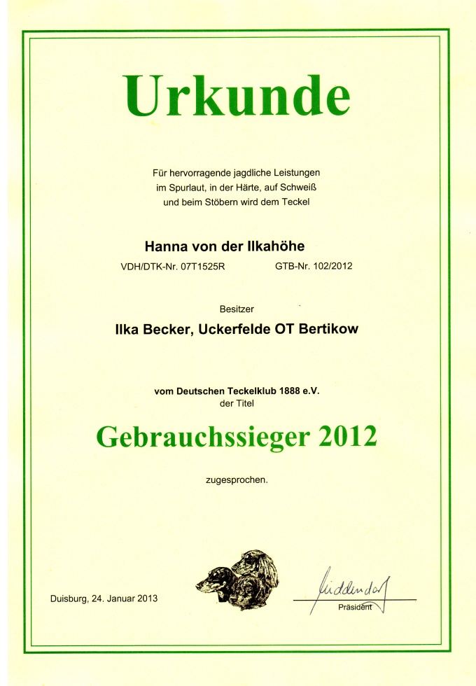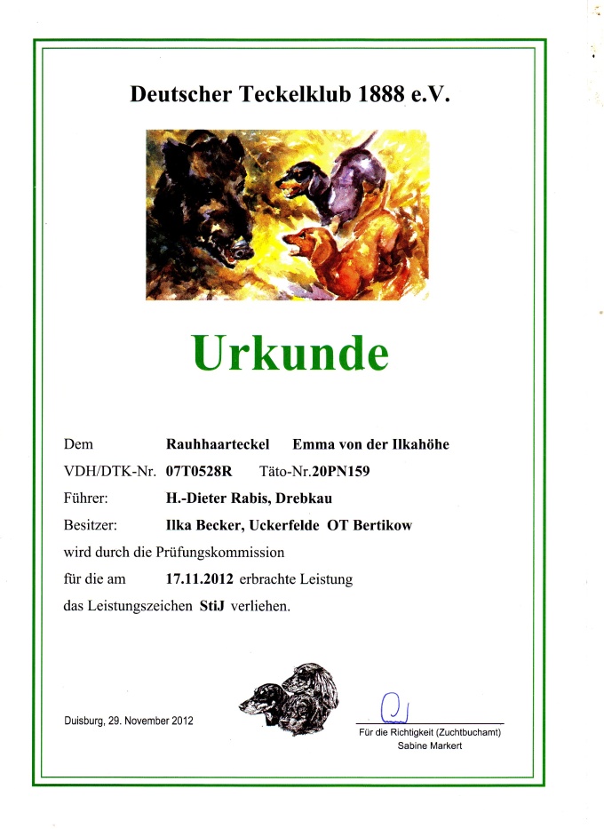 Teckel aus unserem Zwinger zu führen und jagdlich einzusetzen. HERZLICHEN DANK