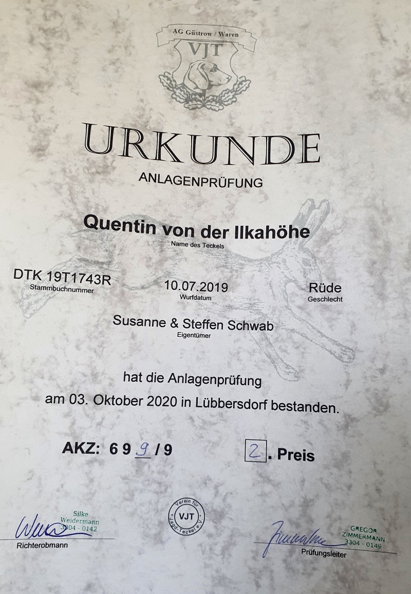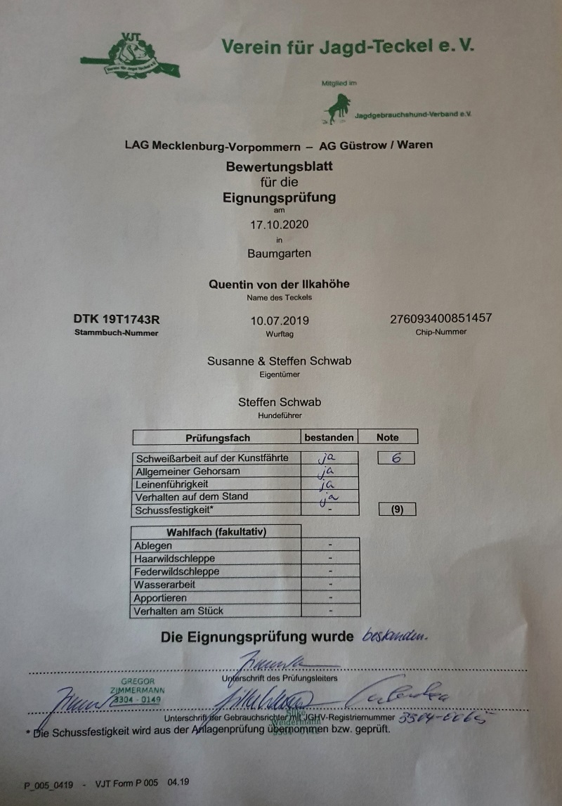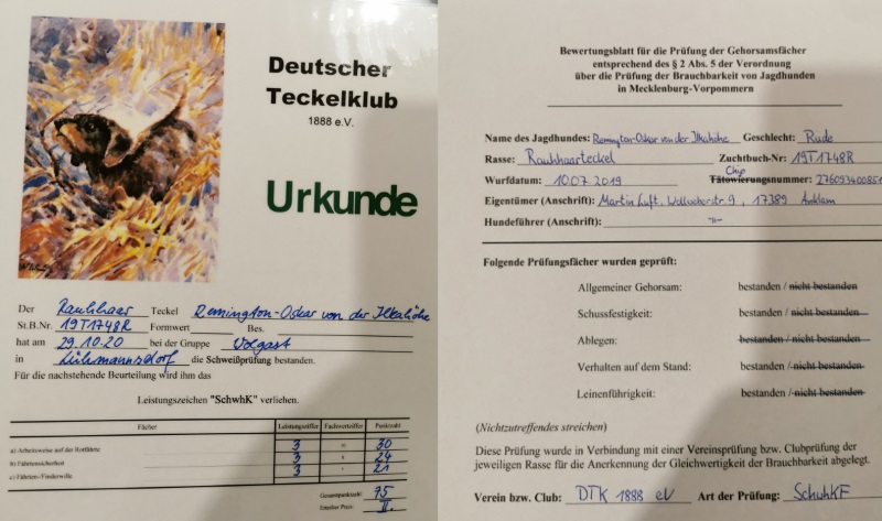 prüfung, Standruhe, Grundgehorsam und Leinenführigkeit (Schußfestigkeit hatte