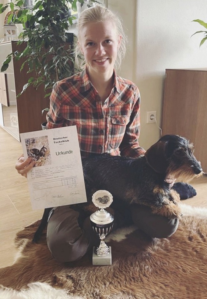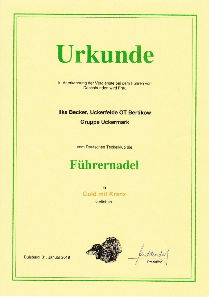 Ilka Becker wurde die Goldene Führernadel für 15 erfolgreich auf Vp geführte Teckel verliehen: