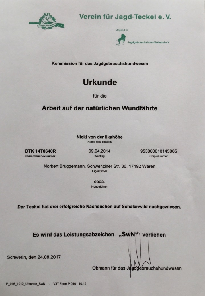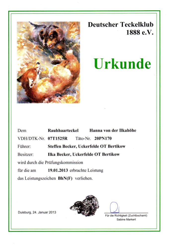 | Neele | SFK, Sp/J, SchwhK, SchwhK/40, Wa-T., BhFK'95, Vp, SchwhN, BhFN, StiJ, GS 2006, GTSt. 109/2006 + Brauchbarkeit | ||