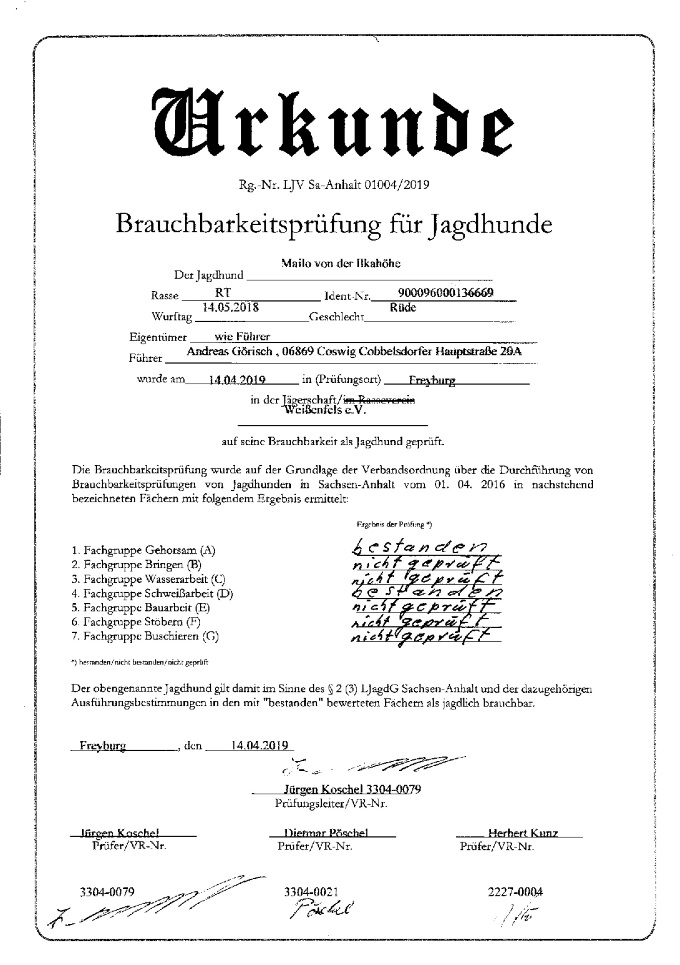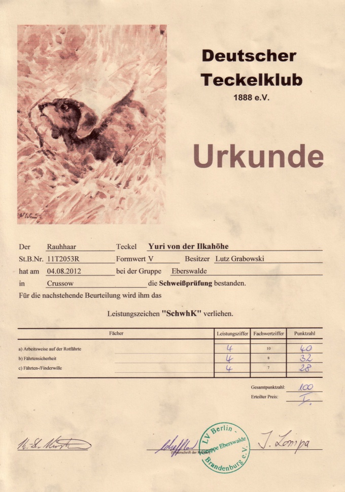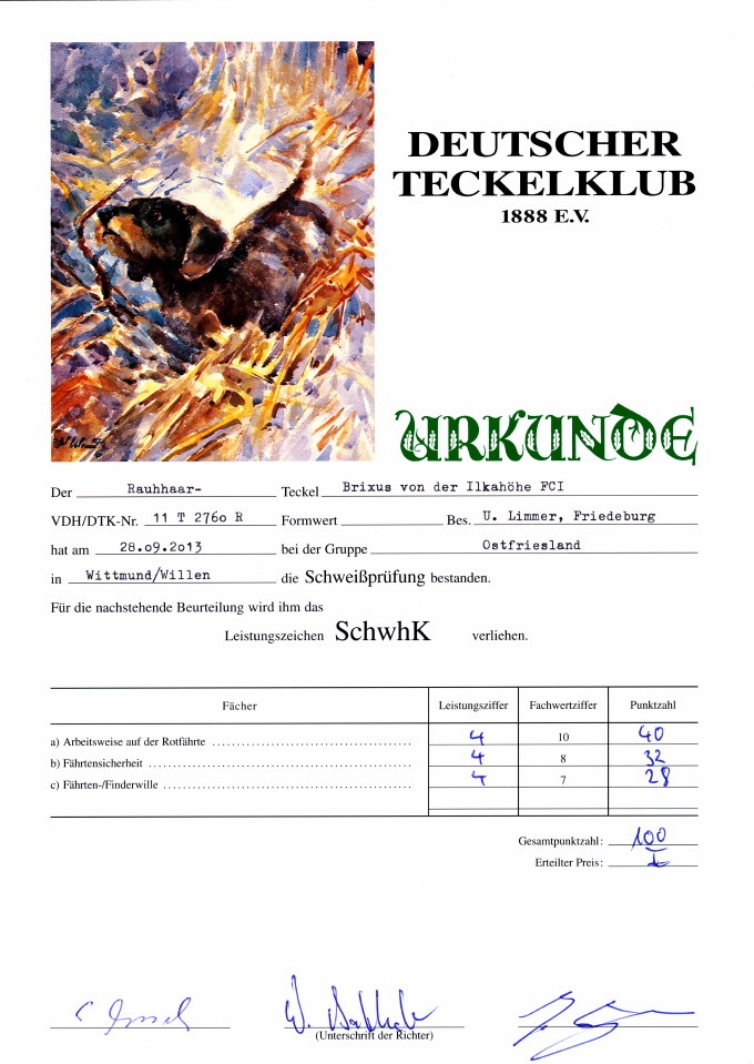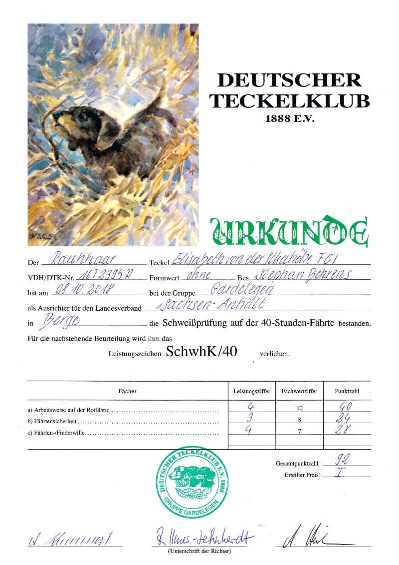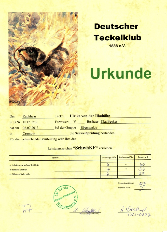 | Hubertus | SFK, Sp/J, BhFK’95, SchwhK, BhFN, + Brauchbarkeit, SchwhN | ||