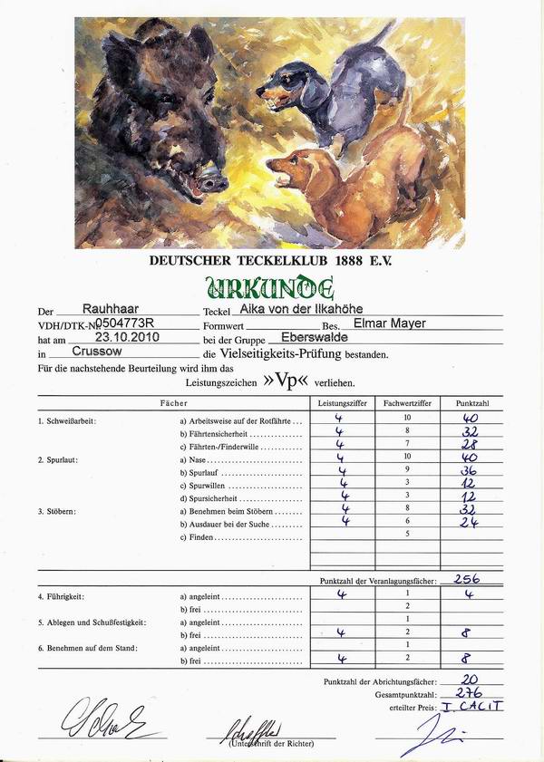 | Alline | SFK, Sp, BhFK’95, EP, SchwhN, Wa.-T., Schwarzwildprüfung/Polen | ||