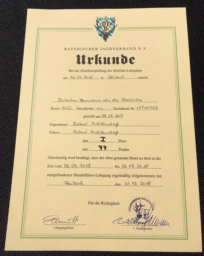 absolvieren. Weidmannsheil an die Besitzerin und Führerin Katharina Zemp aus der