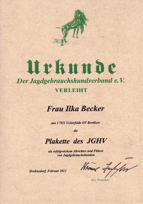 auf jagdlichen Prüfungen führten und so ihren Jagdhund