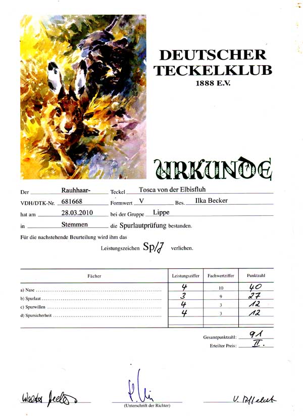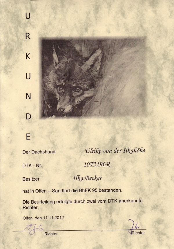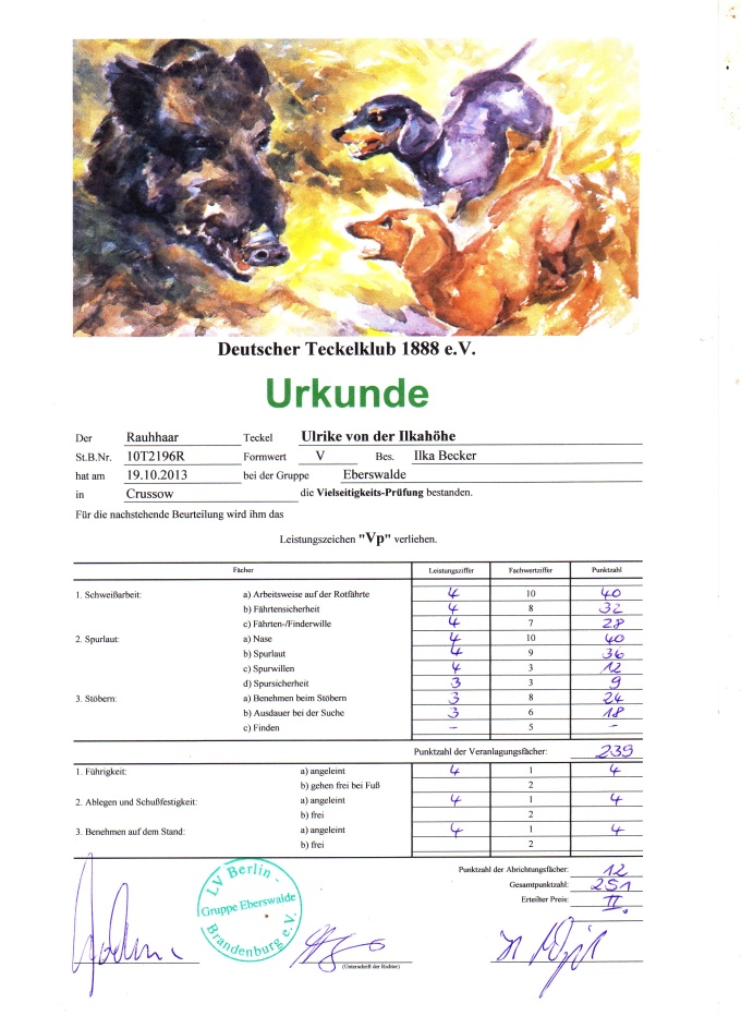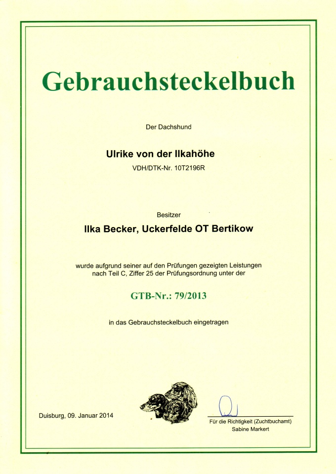 Ulrike von der Ilkahöhe, VDH/DTK-Nr:10T2196R, WT 20.06.2010