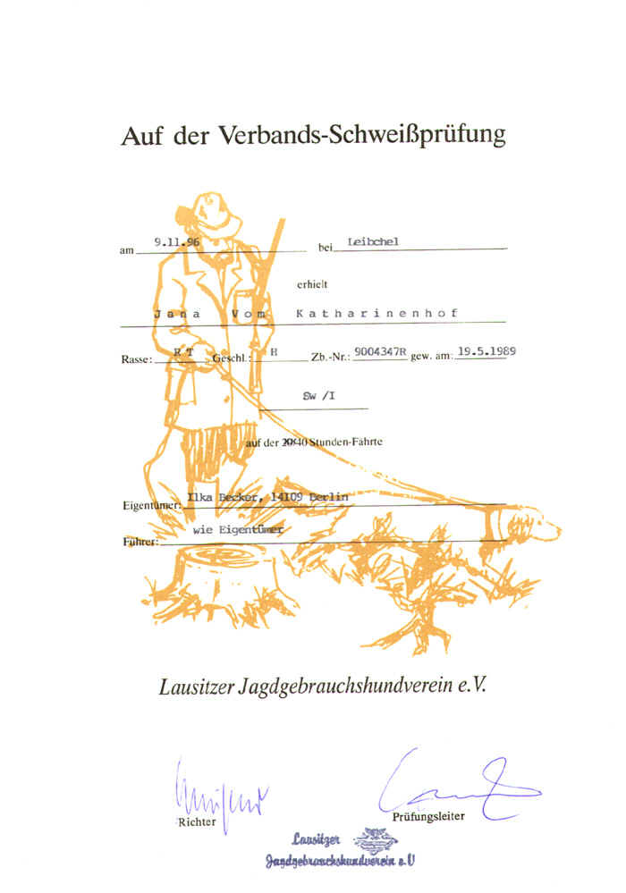 ich im Frühjahr 2003 einen Hannoverschen Schweißhundwelpen vom Verein