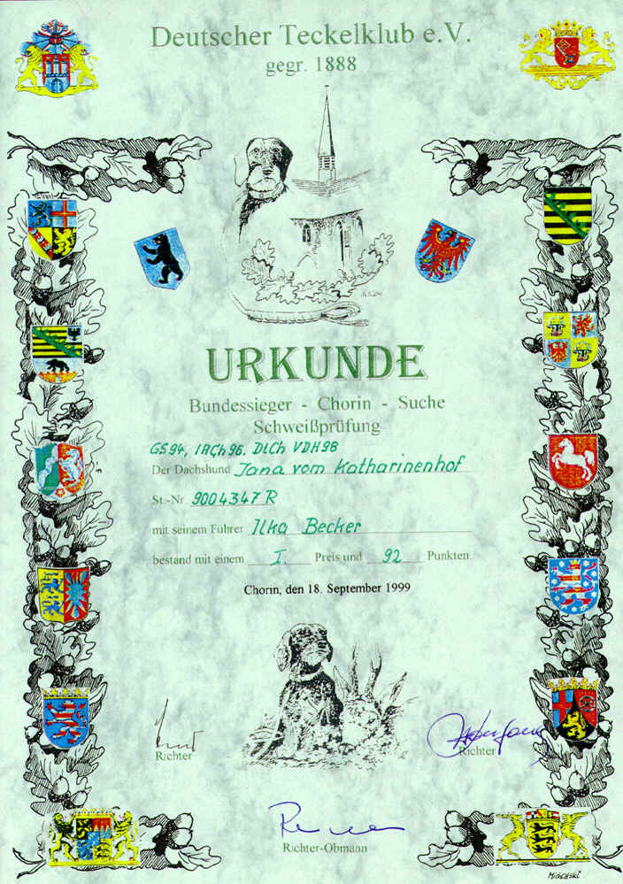 GS 1994, IACh 1996, DtCh VDH 1998 Jana vom Katharinenhof :
